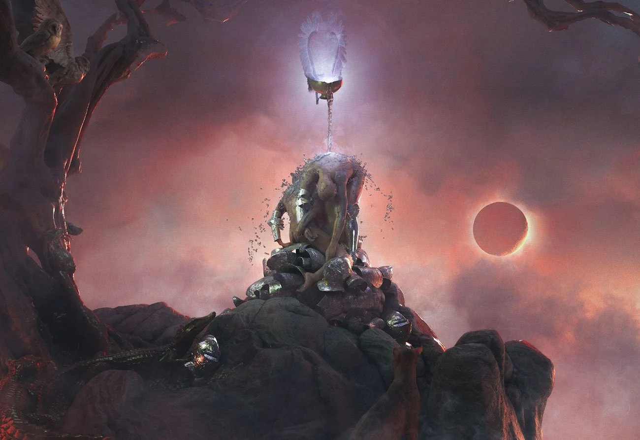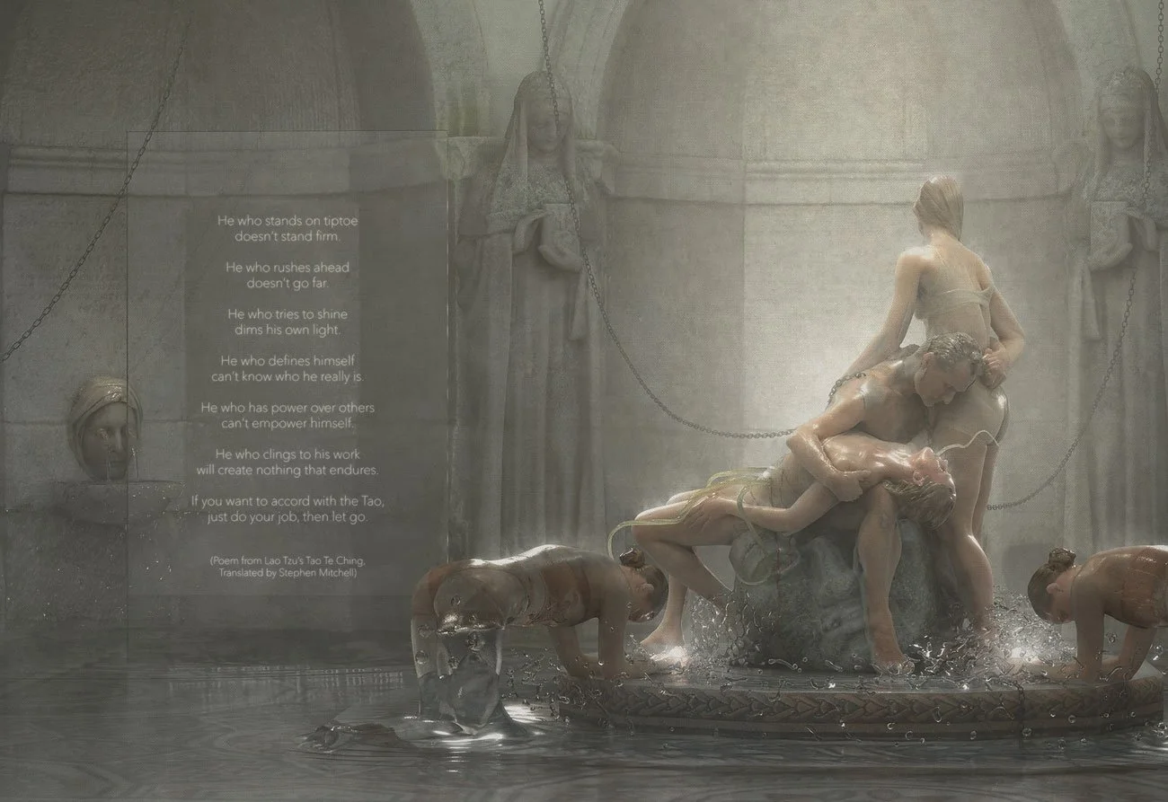 I was asked if I would be interested in creating a giant cgi painting and since I like to push everything I do to the next stage, I said yes! It was the most complicated and expensive one I have done so far. I wanted to create a space for people like me who needed to be in somewhere between. Neither in hell nor heaven. A place where you are not forced to be in a certain way. Which is also the values of my collaborators.