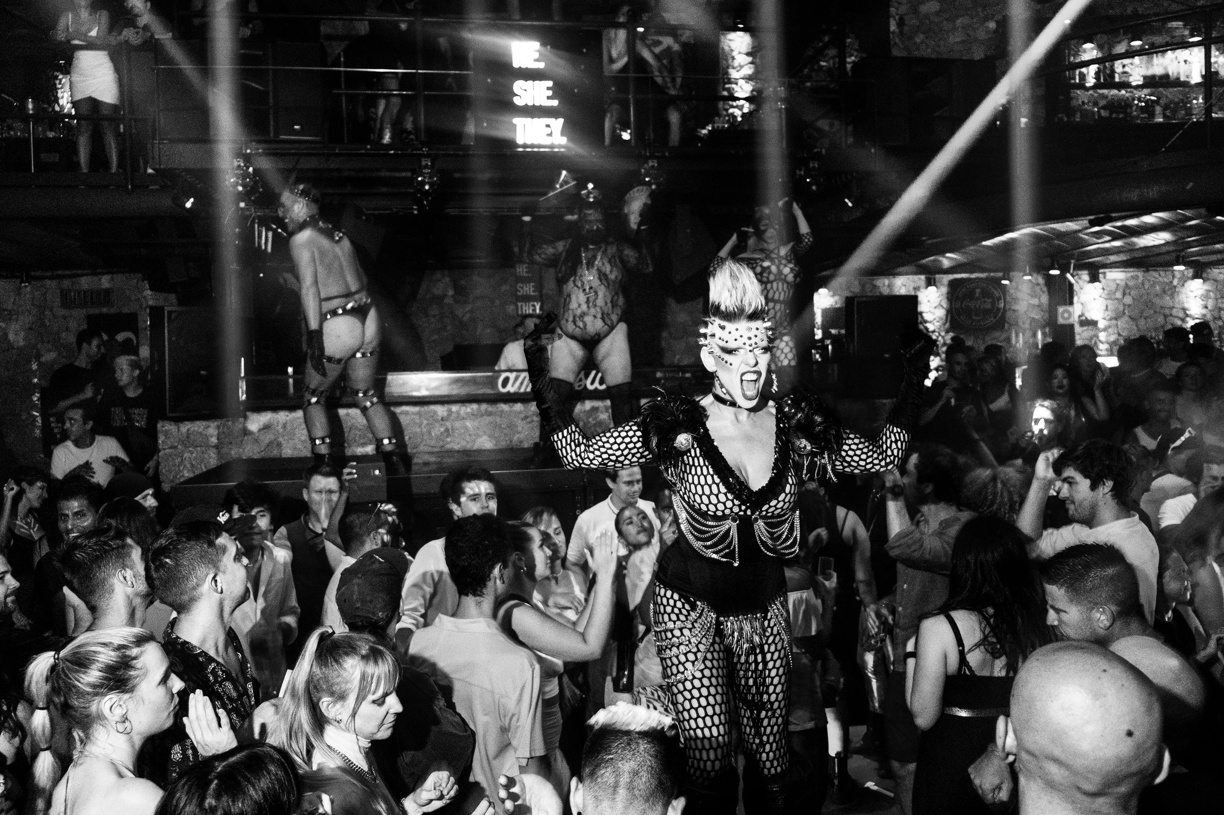 We aren’t solely LGBTQIA+ at all. First of all, we’re owned by my queer ass self, but also Sophia who is a straight woman, the 3rd member is Ashraf who is a queer person of color, and all get on harmoniously. I think that structure exemplifies, that we’re about inclusion, same with our DJ booths, dancers, and dancefloors. I’m queer and white and my best mate is straight and half-Iranian. We go everywhere together. Our friendship is based on us having shared values, morality, humor and showing up for each other rather than who we sleep with or the color of our skin. We celebrate the differences and the similarities with HE.SHE.THEY.